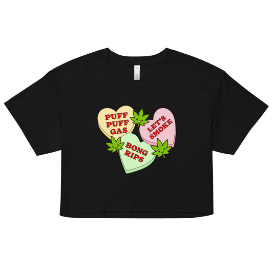 PUFF PUFF GAS CONVERSATION HEARTS CROP TOP